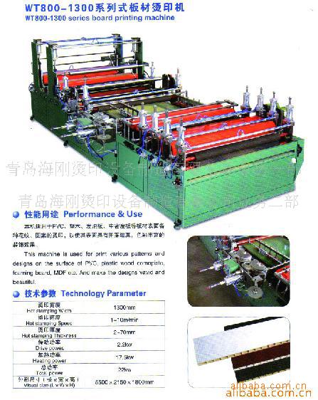 海刚烫金机公司产品WT系列烫金机、压痕烫金机、热转印设备有70多个烫金机品种,不同规格与型号烫金机:手动烫金机、自动烫金机、半自动烫金机还可根据用户定做异型烫金机设备,可广泛应用于印刷厂、塑料厂、木制工艺品厂、金属表面各种颜色、皮革制品的压痕、烫金、装饰装潢热转印、摄影打印等。烫金工件如塑料制品的平面、圆周异型件等。皮革制品:皮衣、皮包、皮鞋等压痕、烫金。纸制品:手提袋、对联、台历、挂历、精装书等。木制品:木制包装盒、金属制品:挂锁、铁渔饵、铅渔饵等金属制品,木制烙糊及烫金等。布料制品:布条、布匹烫金及压痕。PVC制品的自动、半自动烫金,存折磁条烫印烫金压痕等。均可达到理想效果。
