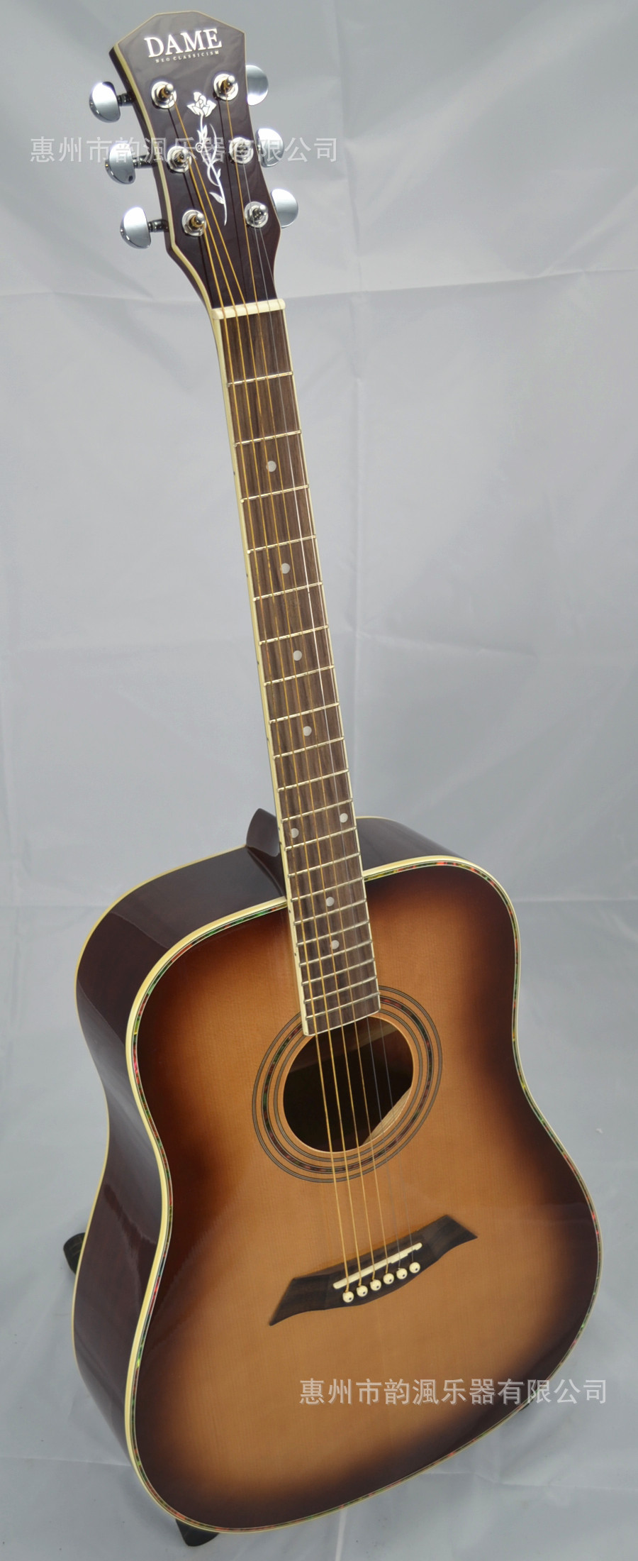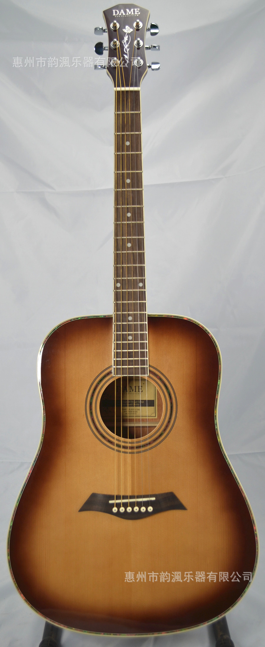 本公司是集生产销售研发一体的吉他乐器企业,生产欧美及日本台湾等国家和地区的大量订单,高中低档各有生产线在生产,空间大,做工精细,品质稳定,欢迎朋友下单订购.