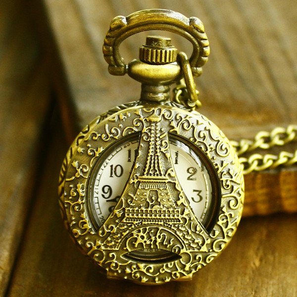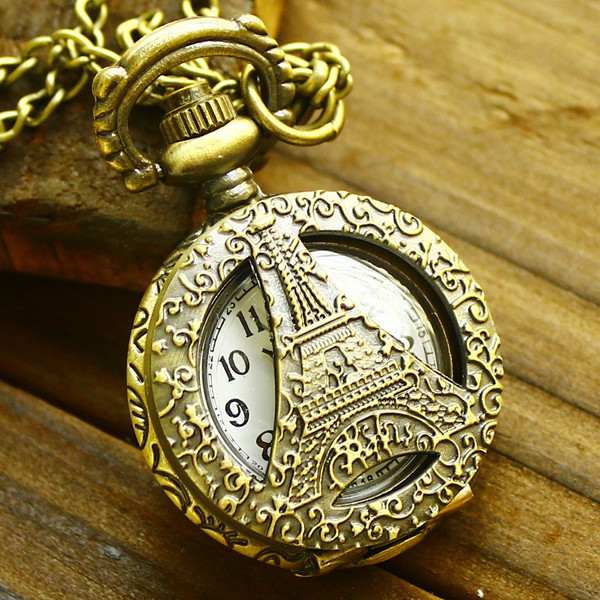 新款小号镂空怀表项链 厂家直销 外贸青古铜怀表双面铁塔 地摊表