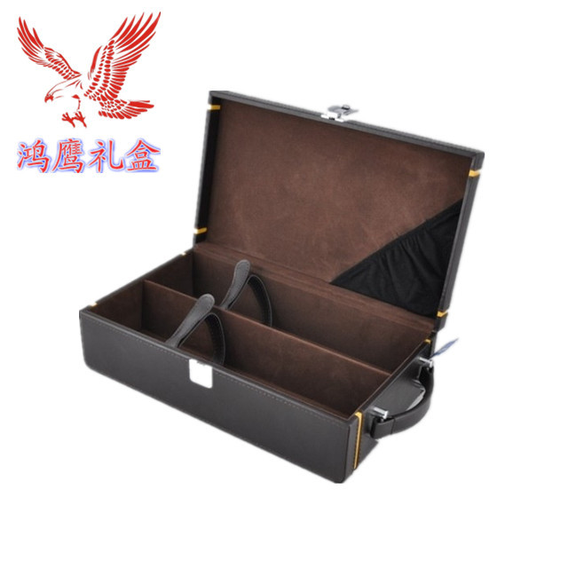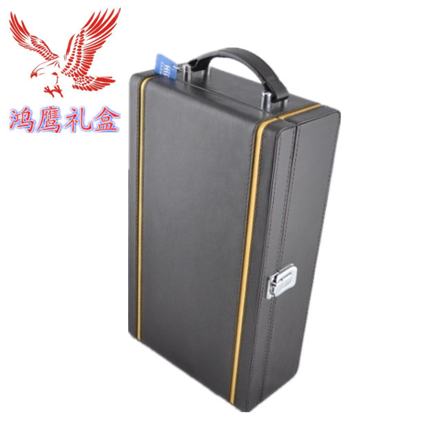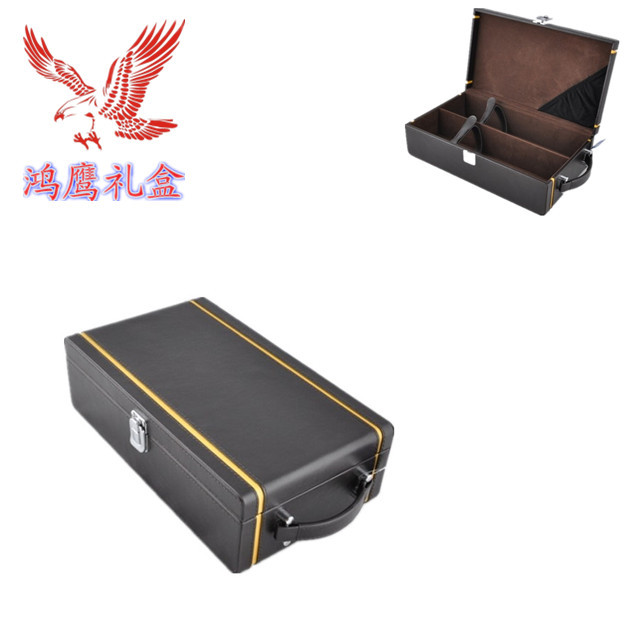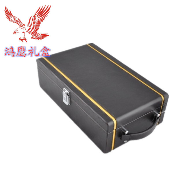 【永康鸿鹰礼盒】黑色双金边款皮盒包装/红酒黑色双边款皮盒包装