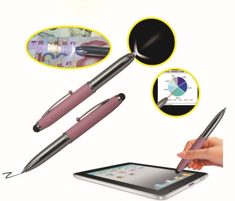 遥控激光笔集激光教鞭、无线键盘于一体,是配合PC机、手提电脑、投影仪使用的,它广泛用于产品演示、电化教学及学术会议等场合。功能说明功能示意如下图A、当选择开关选择键盘模式时,具有键盘的部分功能,各按键功能说明如下:向上翻页:相当于键盘的PgUp功能,支持如PowerPoint等软件的向上翻屏。向下翻页:相当于键盘的PgDown功能,支持如PowerPoint等软件的向下翻屏。向右/ALT+TAB:将三向开关往下拨至所需档案,放开后即可切换档案向左/F5:在播放PowerPoint幻灯片文件时按一下屏幕变成黑屏,再按一下回到播放状态。B、当选择开关选择鼠标模式时,具有鼠标的部分功能,各按键功能说明如下:鼠标上移:按住可以使用鼠标的指针向上快速移动。鼠标下移:按住可以使用鼠标的指针向下快速移动。鼠标左移:按住可以使用鼠标的指针向左快速移动。鼠标右移:按住可以使用鼠标的指针向右快速移动。使用技巧:如果要精确定位,可以用点动的方式去按,如果连续按住三秒,鼠标指针的移动速度将加快。技术参数发射频率:315MHz 433 MHz 2.4GHz遥控距离:最小10米工作电压:3.7V锂电池:锂电聚合物电池,USB接口充电输出功率:< 1mv尺寸:8.4*2.5*0.84重量:22g方便携带双指示灯:具有欠电指示发射指示接口:USB1.1系统要求:Windows 98SE/Me/2000/XP连接接收器和安装默认的设备驱动n把USB接收器插入计算机的USB接口n Windows 98操作系统n添加新的硬件系统1.如果它不是新的硬件系统,操作系统会自动安装默认驱动,其它的步骤都不需要a)点击下一步屏幕上出现查找界面b)给设备选择最好的驱动,然后点击下一步硬件系统搜寻的是合适的设备驱动c)点击下一步,完成整个驱动的安装Windows 2000/XP操作系统建立新的硬件系统2.如果它不是新的硬件系统,操作系统会自动安装默认驱动,其它步骤都不需要a)点击下一步硬件系统选择合适的设备驱动b)点击下一步,完成整个驱动的安装。如何使RF接收效果更佳为了RF接收效果更佳:a)放置接收器的地方远离电器设备,例如显示器、音箱或其它外储存设备,至少在15cm之外。b)如果你的计算机有包含铝或镁的金属器件,要在计算机侧边使用发射器,如果你在正前面使用,显示设备会影响电台的频率信号。充电l当按键按下时蓝灯和红灯同时亮时表示电量不足。l当电量不足时,请注意及时充电a)充电时请打开USB口保护盖插入充电器USB端口b)把充电器插入墙上的插座打开电源l当充电器隔不久上绿色灯熄灭表示电池己充好电