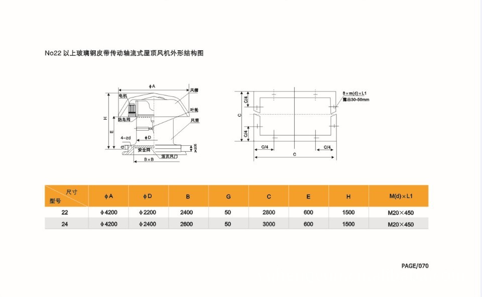 1、DWT-轴流式屋顶风机直径自¢300-¢2400mm,共十七种机号;DWT-Ⅱ离心 式屋顶风机有¢300-¢1000mm九种机号;DWT-离心式屋顶风机直径自¢280-¢800mm, 共十种机号;DWT-Ⅳ无电机涡轮排风机有14"、20"和27"三种机号,且还可根据用户 需要提供其它机号; 2、各种型号的风机结构可参阅总装图,它由叶轮、风筒、风帽、传动部件、活 页风门、安全网等部件组成; 3、风机传动形式:DWT-I型风机¢≤2200mm采用电机直联传动,如用户根据使用 场合需用皮带传动,本公司亦可按要求生产,¢≤2200mm以上采用用皮带传动形式, 也可采用减速器传动形式,活页风门有重力式、电动式和手动式三种;DWT-Ⅱ、DWT-Ⅲ 型屋顶风机,采用电机直联传动; 4、屋顶风机应用比较广泛,故有多种使用需求。本公司可按用户不同的技术参数 要求进行研制、开发和外形结构的改进; 5、风机送排风压力高于600P以上应采用离心式风机;压力在400P-600P应采用混 流式通风机;压力低于400P以下应采用轴流式通风机。外界自然风较强或室内外温差较 大时,可采用无电机涡轮排风机; 6、特点说明:防鸟网、安全网、活页风门作为风机的附件不包括在风机中,若不 注明我厂不予供给