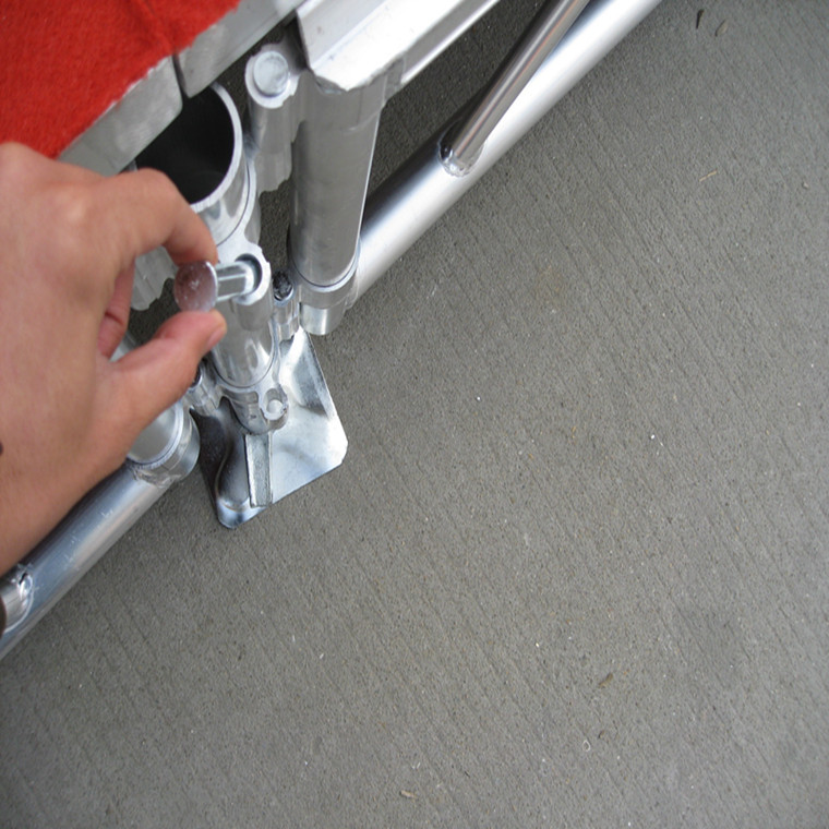 3、优点:a.相对铁质舞台,铝合金拼装舞台,不但搭建更加轻便,并且不会生锈,美观,大气。适合室外和室内等不同场合使用,使用寿命要比铁质舞台长数倍,并且铝合金舞台的日常维护简单。b.铝合金拼装舞台与同类的铝合金舞台对比:舞台使用开模具特殊定做铝材的制作,每一部分都经过精确的设计,细节部分都处理得很好;引进国外最实用的结构构造方法,让舞台对于同类产品,更加稳固,1.22*2.44米可以承受900公斤/平方,在平均受力的情况下。