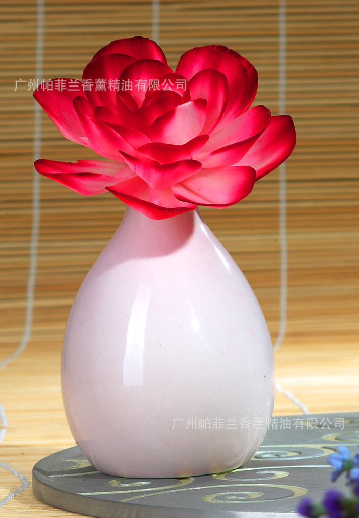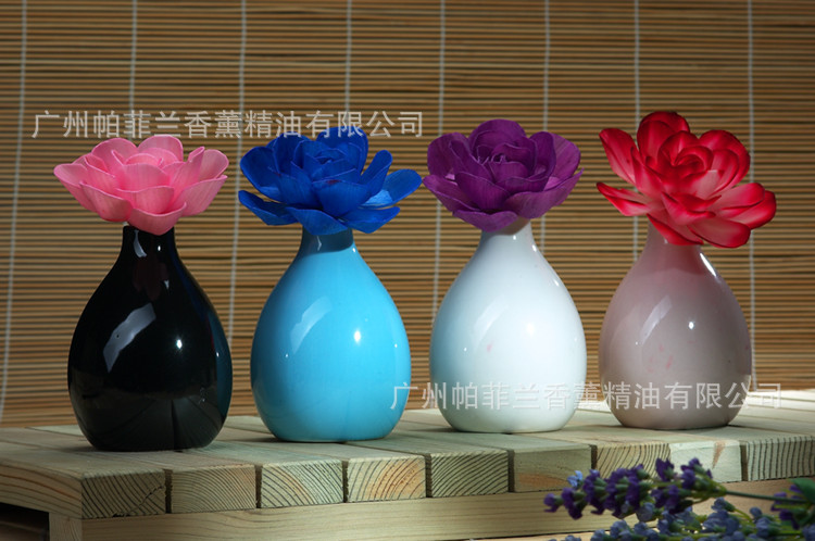 简约陶瓷瓶配上2012最新款变色香薰花。