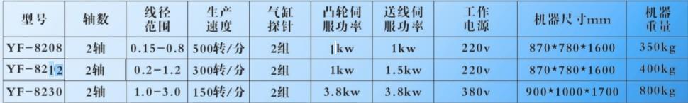 本机采用二轴高精度电脑控制送线轴和主轴,二轴可同步和独立运作。送线轴控制送线,主轴带动凸轮控制外径,节距,切刀等成型。该机适用于卷制各种左右向弹簧,扭簧,线材成型等弹簧,可选配自由长度检测的检长机和扭簧装置。