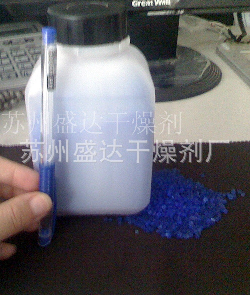 变色硅胶就是在硅胶中加入一些带有结晶水的无机盐,少量的二氯化硅,如钴盐。无水时就是失去结晶水时的状态是蓝色,吸水时就是结晶水时的状态为粉红色,变色硅胶可以循环使用。当颜色变色后,可以在干燥箱中烘烤,使其回到无水的状态就可以使用了,蓝色硅胶分蓝胶指示剂,变色硅胶和蓝胶,外观为蓝色或浅蓝色玻璃颗粒。