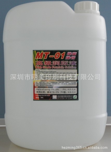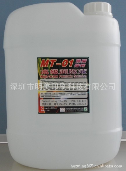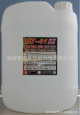具有PH值强缓冲性能(持续在印刷最佳PH值4.6-5.7之间),迅速降低水的表面张力,形成薄而匀的水膜,持久地铺展覆盖印版面上,适应油墨的宽容度大,具有自动调节各地的软、硬水质为印刷最佳用水质,水墨平衡易控制,好掌握;更为显著的是:无磷、无硅、无钙,不会造成传水辊和橡皮布表面结晶成釉,而降低传水、传墨性能,并具有自动杀灭生物澡类和消除钙质功能,不会对传水系统造成障碍或堵塞