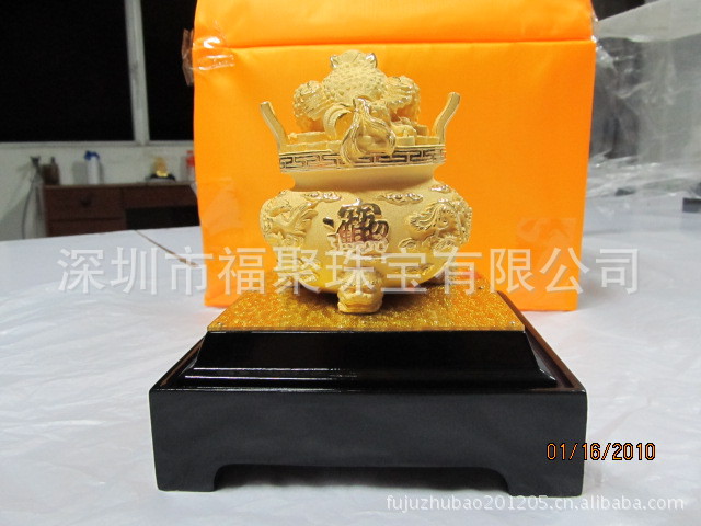 【产品详情】:千足铸金摆件。摆件造型为全立体,绒沙表面细腻均匀,色泽晶亮所有产品均有广东省金银珠宝检测中心出示的检验报告(表面黄金覆盖层含金量:99.9%)。