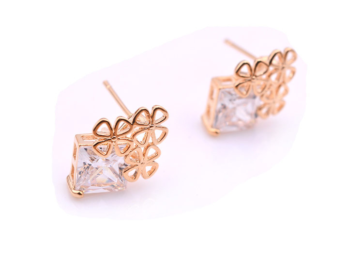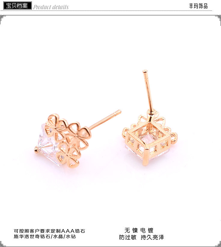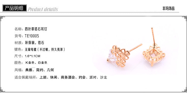 韩版四叶草锆石小耳钉 不过敏 现货 满600元包邮 可混批