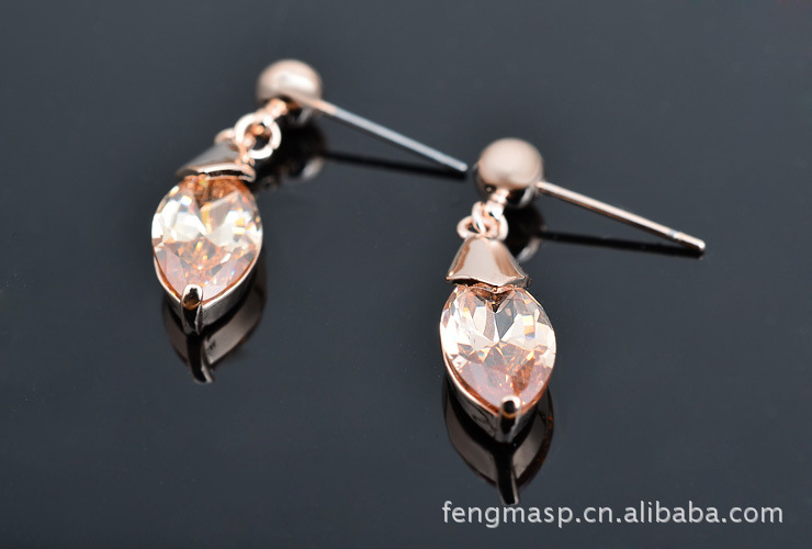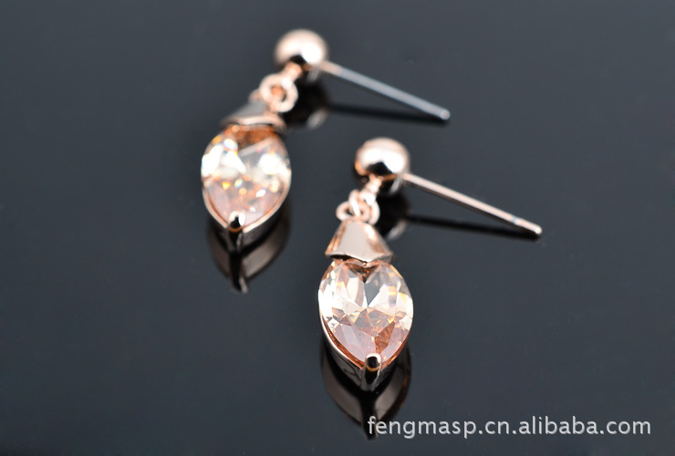 广州饰品 黄铜镶锆石 时尚小水滴耳环耳钉批发 TE1055
