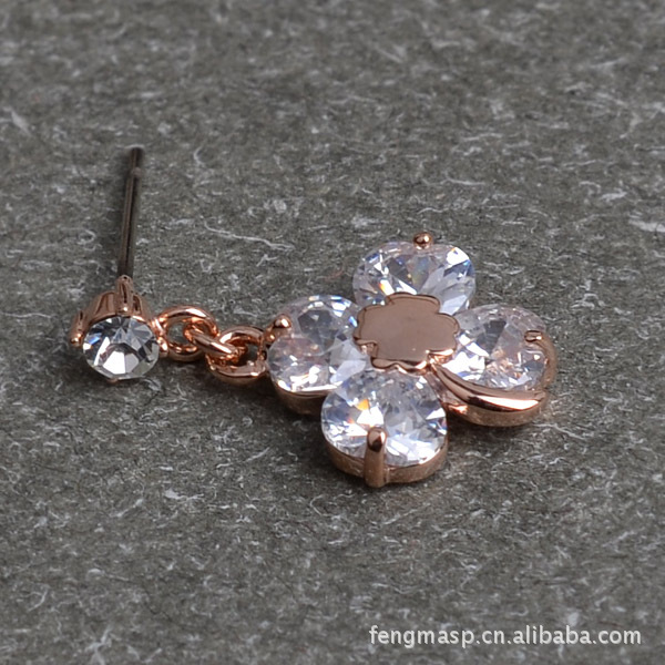 韩版四叶草耳钉 闪耀锆石 防过敏耳饰 小耳钉批发
