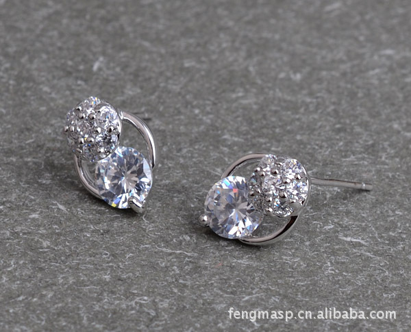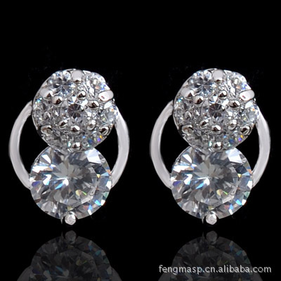 闪耀锆石耳钉 镶钻耳环 高档小耳钉批发