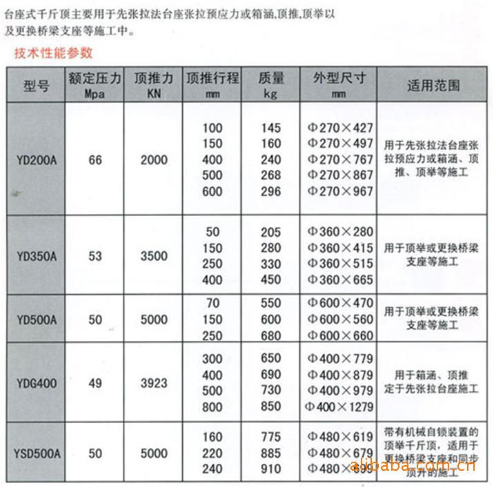 预应力千斤顶是用于张拉钢铰线等预应力筋的专用千斤顶。预应力千斤顶均为穿心式液压双作用千斤顶,预应力千斤顶需和高压油泵配合使用,张拉和回顶的动力均由高压油泵的高压油提供。根据结构的不同又分为前卡千斤顶和普通穿心式千斤顶。预应力千斤顶结构紧凑,张拉时工作平稳,油压高,张拉力大,广泛应用于公路桥梁、铁路桥梁、水电坝体、高层建筑等预应力施工工程。
