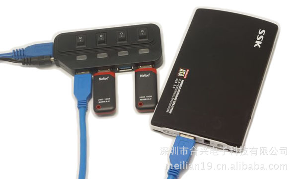 合兴科技最新发布一款超速USB3.0 4口 HUB,这是一款与时尚潮流接轨,专门为追求高性能用户以及发烧友量身定做的USB 3.0集线器,色彩方面配有两种大众型颜色,纯白和纯黑,设计简洁的集线器端口为一拖四式。 带4个独立开关更方便,4个智能LED显示灯更加人性化!