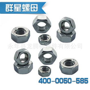 一条龙生产各种规格,型号,材质的六角螺母 HEX NUTS 薄螺母 THIN NUTS 加厚螺母 THICKEN NUTS 开槽螺母 SLOTTED NUTS 方螺母 SQUARE NUTS 盖形螺母 CAP NUTS 法兰面螺母 FLANGE NUTS 圆螺母 ROUND NUTS 焊接螺母 WELD NUTS 自锁螺母 SELF-LOCKING NUTS 高强度螺母 HIGH-STRENGTH NUTS 其它螺母 OTHER 本厂也可根据用户要求设计、制造,以满足不同的螺纹规格及锁紧行程。可生产[公制,英制,美制,德制],并可按客户图纸加工。
