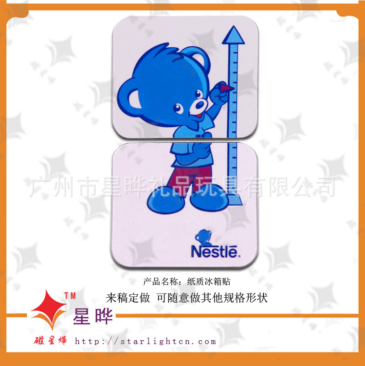 本产品采用磁性材料裱铜版纸彩色印刷腹膜制作而成,色彩丰富,使用寿命长,移动方便,自由组合,避免了粘贴胶质遗留痕迹的问题,可贴于冰箱贴等任何金属平面物体外表。使用范围广,是商务促销的最佳选择。