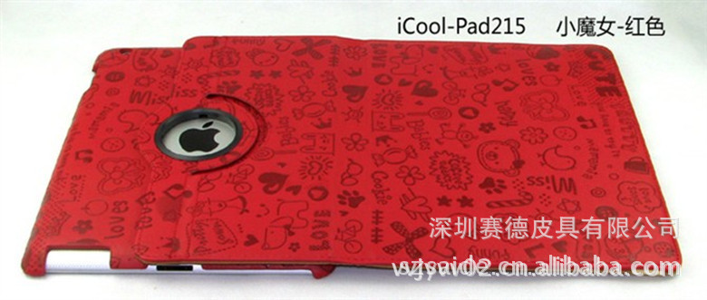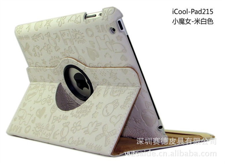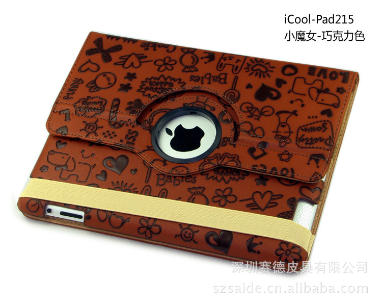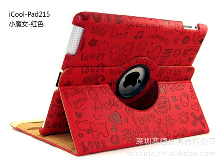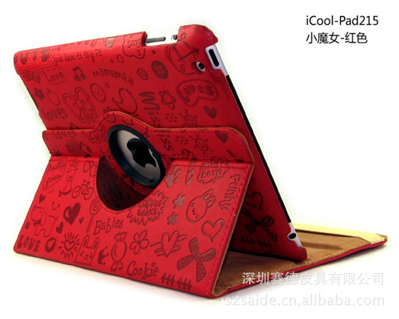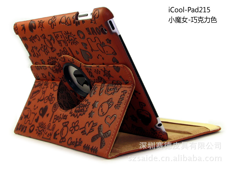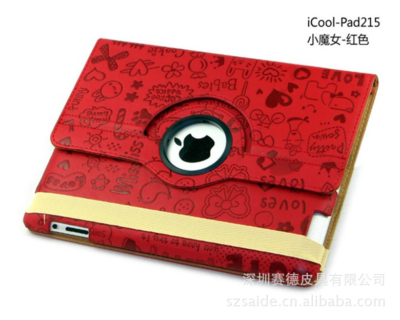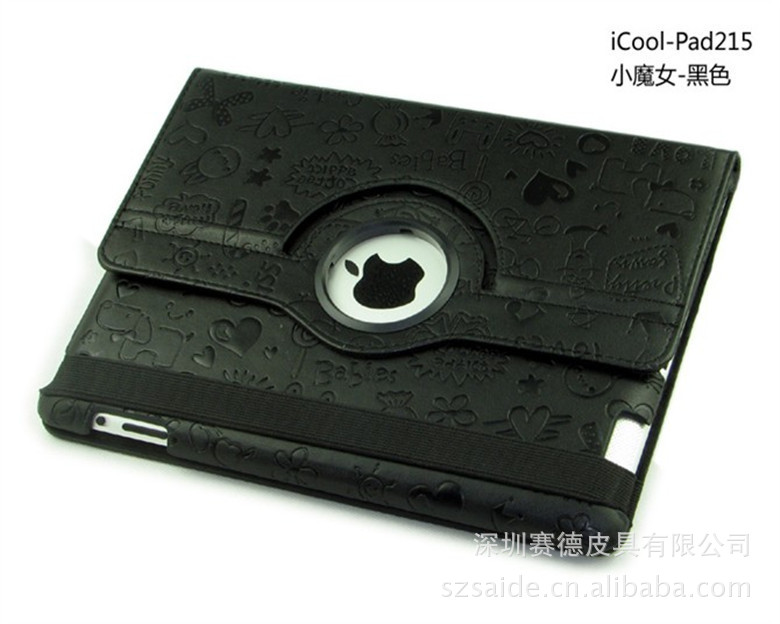 工厂直销 ipad360度旋转 小魔女纹路 三档休眠皮套