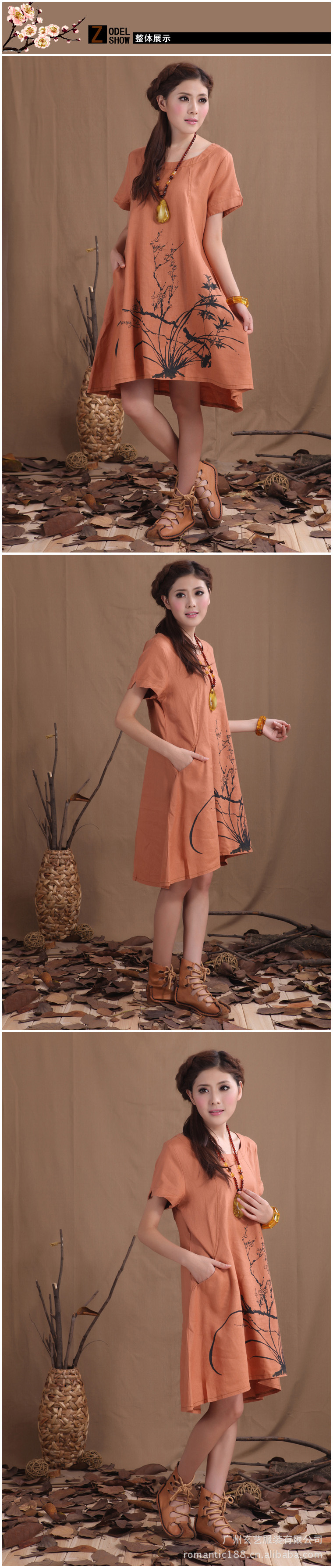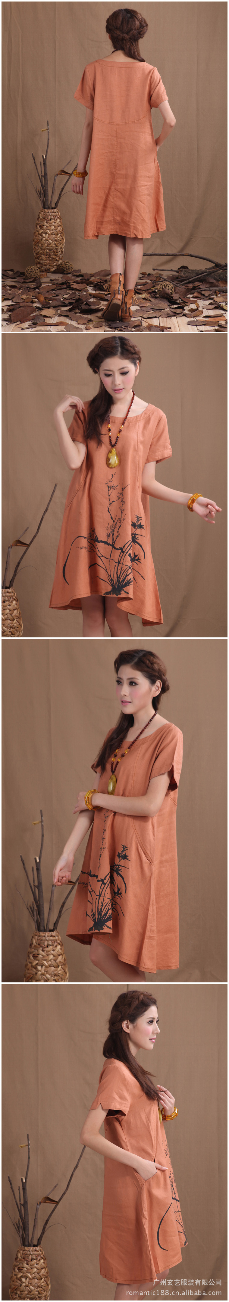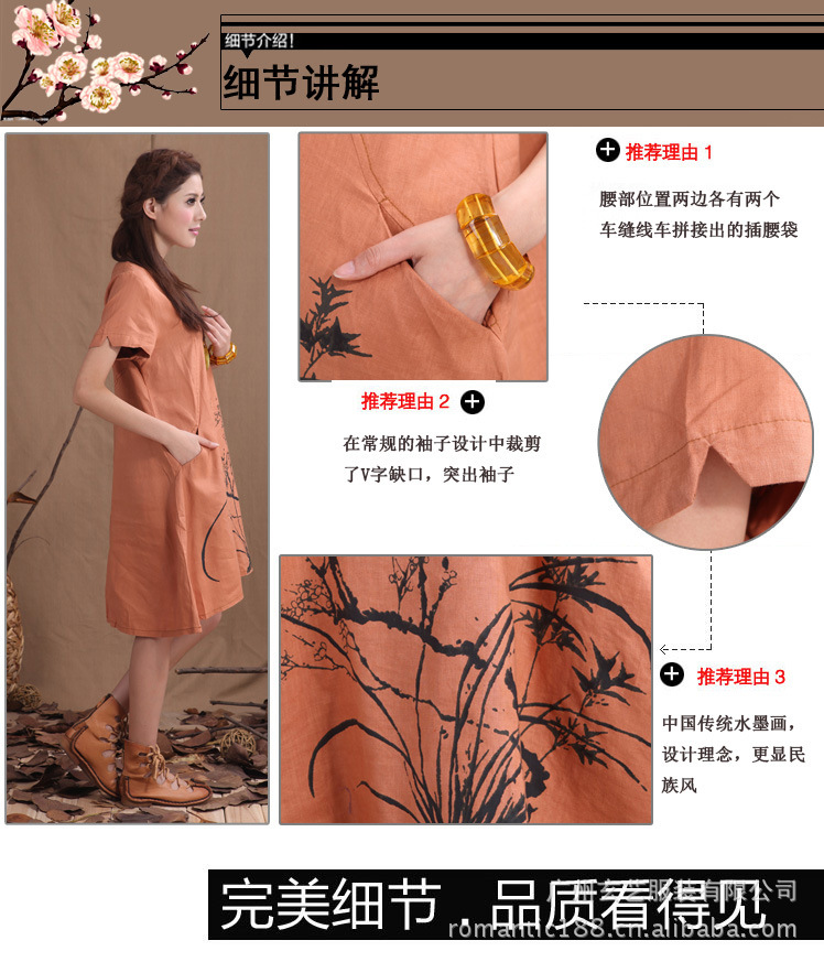 衣茗飘香 原创棉麻女装女夏装新品女连衣裙纯麻水墨画大码连衣裙
