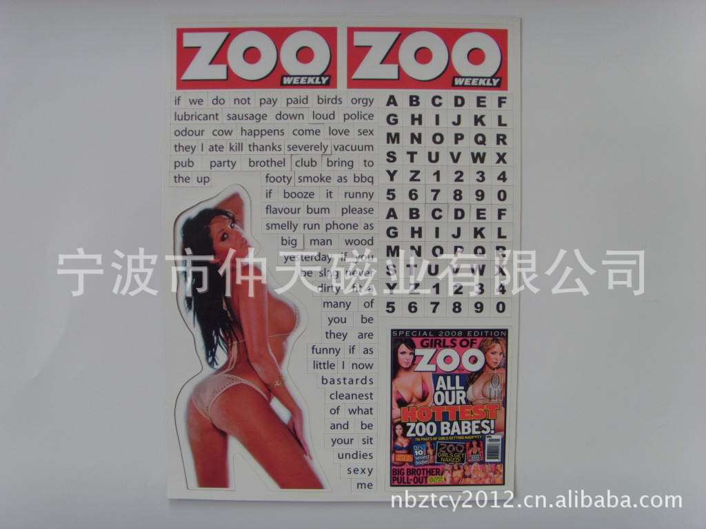3) 磁性冰箱贴:采用下面软胶磁铁+上面铜版纸或PVC彩色印刷腹膜制作而成。