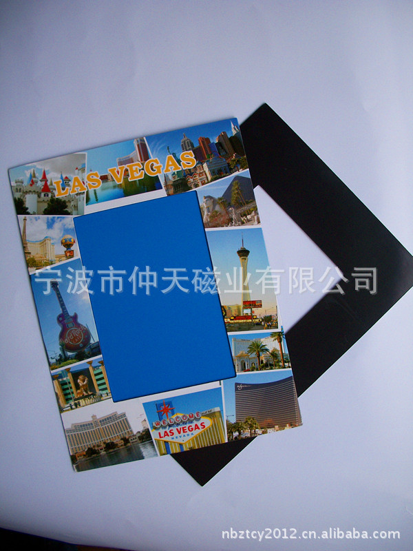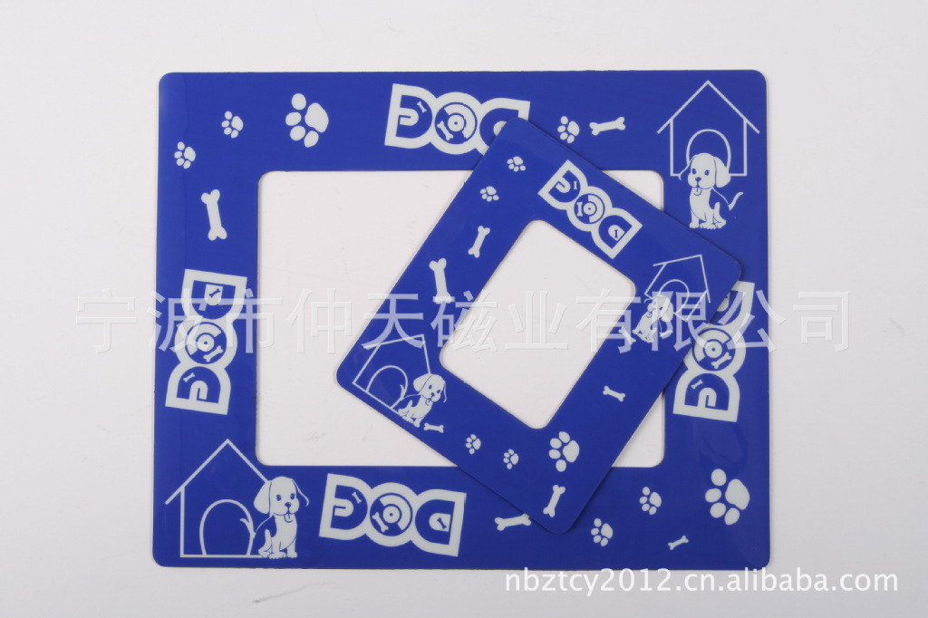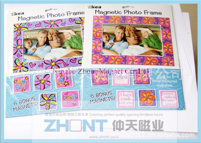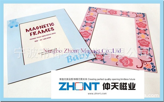 5)磁性相框:采用软胶磁铁裱铜版纸彩色印刷腹膜,中间冲切相框制作而成。