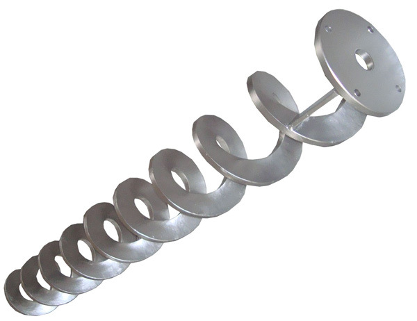 无轴螺旋输送机替代了传统的胶带式输送机,它具备了;工作效率高、维修 简单、污染少、噪音小等优点,迅速被人们重视。它不但能运送老式设备无法运送的轻软、细小、带状漂浮物质,而且还能将砂水分离,污物压榨。外型美观、结构 合理。但是,该设备的主轴是一根无轴的螺旋,制作难度较大,以前国内一直依赖进口,我公司经过多年的试验.成功研制出我国自己的无轴螺旋。