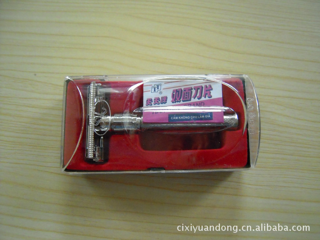 1.产品外壳为透明熟料外壳包装,能看到里面的美观刮胡刀。