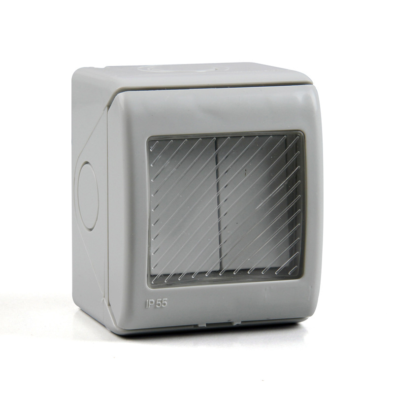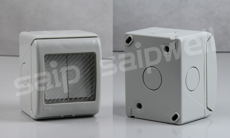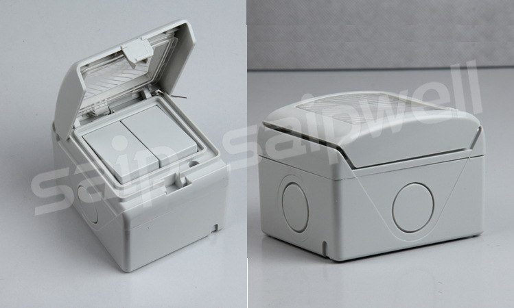 saipwell/赛普品牌SP-2GS防水开关,防水开关有插座,主要用于潮湿的地方,如别墅门口,做为门铃开关,或者卫生间灯的开关等。开关外面有一层防水保护透明盖。分为单路和双路。单路:是指按下开关即是通电,松开后就弹回来了;双路:是指按上去打开,按下来是关闭,与正常的墙壁开关一样。安全触摸尤为重要,可通过透明膜片直接进行操作,确保接触安全。框架可在紧固固定螺丝前安装在底座上,盖板夹紧可靠、维修方便,确保正闭时防护等级为IP55。