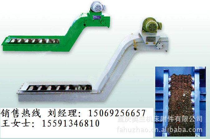 磁性排屑机 磁性排屑机产品说明: 本装置是利用永磁材料所产生的强磁场的磁力,将切屑吸附在排屑机的工作磁板上,或将油中、乳化液中的颗粒状、粉状及长度≤150毫米的铁屑吸附分离出来,输送到指定的排屑地点或集屑箱中。可处理粉状、颗粒状及长度小于100毫米的铁屑及非卷屑,或将油、乳化液中的碎屑分离,输送至指定的排屑箱中。 磁性排屑机适 用:针对短卷屑设计,适用于金属铁屑、细铁屑、铸件铁屑。可广泛应用于加工中心,组合机床、铣床、钻床、拉床、自动车床、齿轮加工机床等机械加工设备和自动线的铁屑运输及湿式加工冷却液中的铁屑处理,从而净化了冷却液。还可做为 导磁小零件的输送器和提升器,是现代机械加工行业中理想的配套设备。 磁性排屑机产品特点: 1、定量排屑,不产生过载。 2、工作可靠,运转平稳,噪音低,寿命长。 3、采用自动涨紧机构,自动调整整链条松紧度。本产品分为磁性板式和磁性辊式两种结构 ,根据客户要求设计