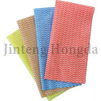原料配比:粘胶、涤纶 克重:30-150gsm 尺寸:30*30cm、30*30cm 布面风格:网孔 印花:波浪纹 颜色:红色 特点:手感柔软、布面平整、印花清晰、吸水性好、色牢度高 用途:干抹布、擦拭布、家用清洁布等