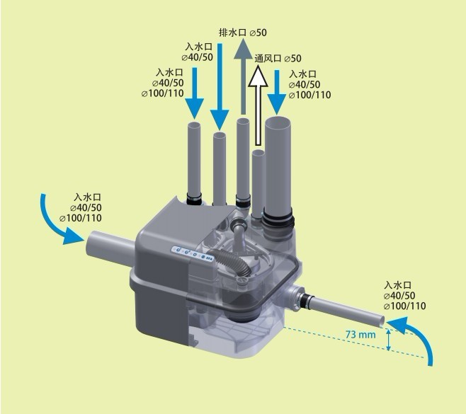 可连接设备 :多个马桶,厨房,浴室以及洗衣间的污水