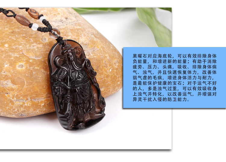 黑曜石极度辟邪,能强力化解负能量,中国古代的文物中,就有相当多有关於镇宅或避邪的黑曜石圣物或佛像。但是请注意,黑曜石本身主要是可以大量的吸纳负性能量,但是并不会清除,所以在一定的时间之内,一定要净化黑曜石。