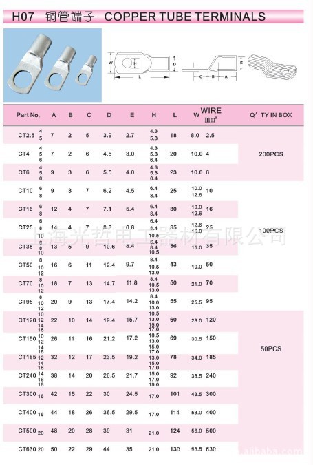 铜鼻子,铜管端子,铜线鼻子,线鼻子,光哲铜鼻子