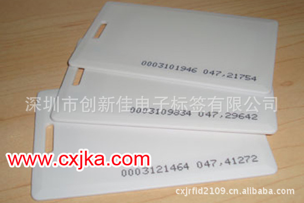 现在应用较广泛的低频卡(ID卡),我公司除可以提供H4001厚白卡外,更可以提供带印刷的H4102薄卡,我公司的低频印刷薄卡符合银行卡的0.76mm厚度的标准。先进的制造工艺是我厂低频卡区别于其它工厂低频卡的最大优点,坏卡率远低于其它卡厂生产的低频卡。性能上的表现也远优于其它低频卡,使用寿命长。