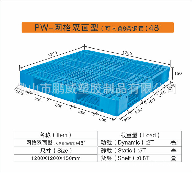 叉车塑料卡板 1200*1200*150 pw-双面网格(可内置8条钢管)48#