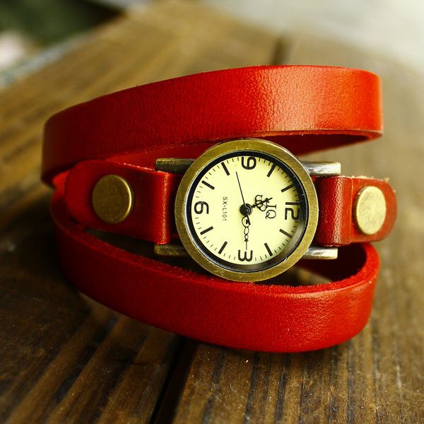 新款手表批发 多色3圈平滑扣数字 牛皮时尚女士手链表 牛皮表