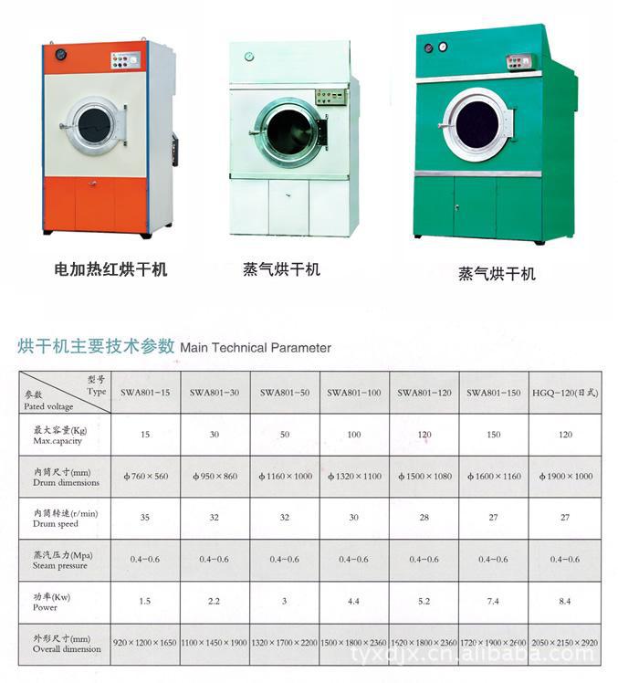 专业生产:30-300kg各种规格工业洗衣机、水洗机、φ500-1200mm离心脱水机;15-150kg烘干机;1800-3300mm烫平机;30-100kg全自动洗脱两用机等系列产品。 这些产品常年出口、销往全国。广泛用于纺织、针织、染织、丝绸、服装、制衣、宾馆、饭店、院校、医院、大型洗涤中心、铁路洗衣厂、洗衣房设备等多种行业使用。
