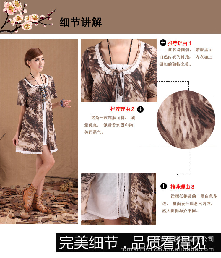 2012女夏装棉麻宽松连衣裙复古水墨画裙纯麻女裙061