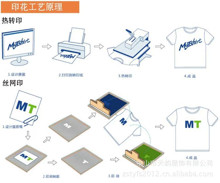 4.关于印花,我们的工艺主要包括热转印、热升华、热渗透、工业烫画、丝网印花、刺绣等,不同工艺价格不一,效果也不尽相同,但是要特别说明的是客户在选择用具体的印花工艺时是不受人为控制的,印花工艺的选择取决于底衫颜色(浅色还是深色)、图案式样(图案颜色、大小、位置)和定制数量.