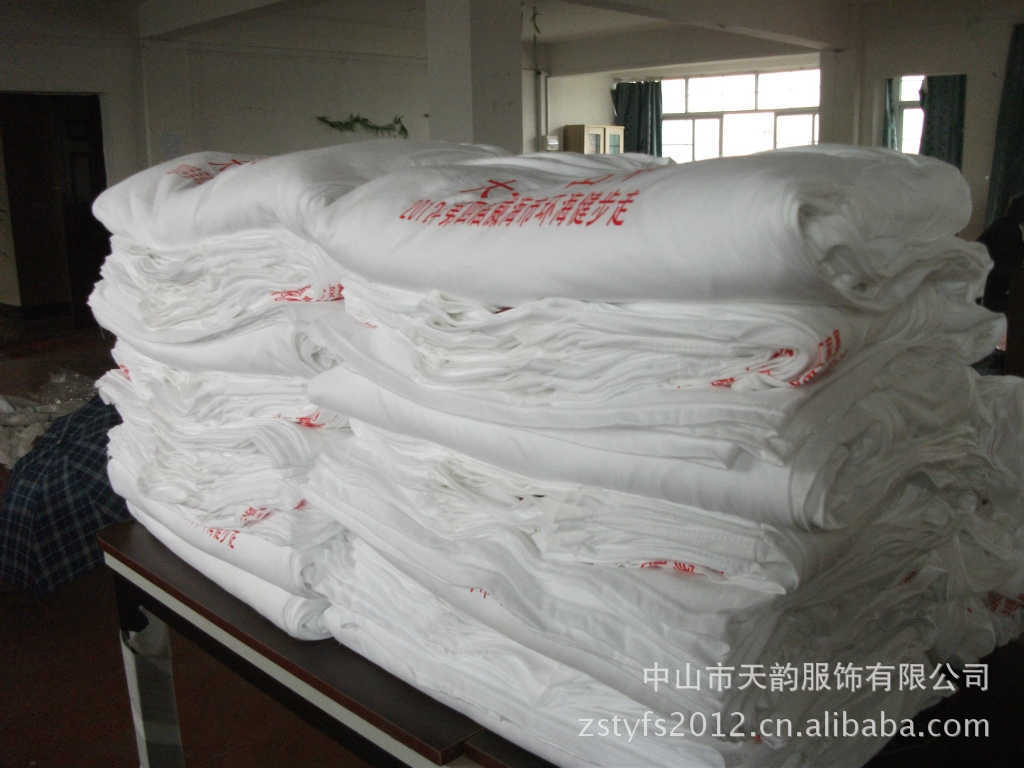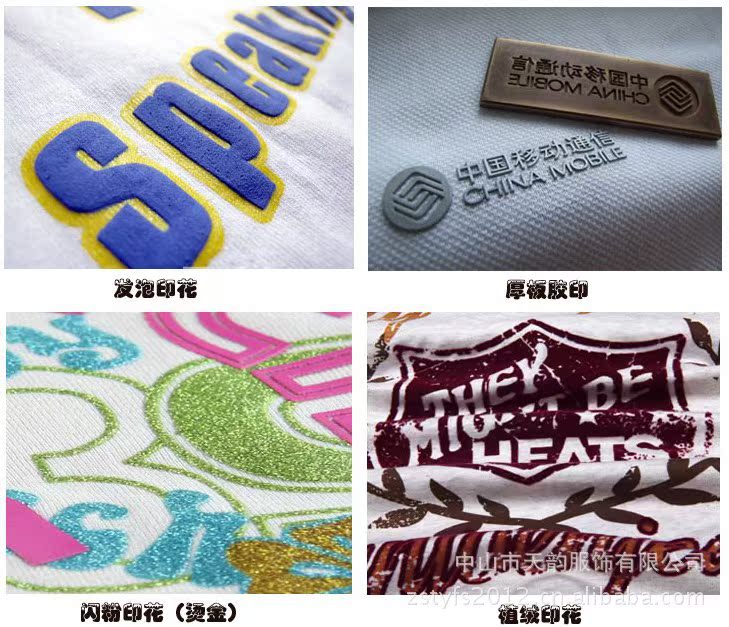 <天韵服饰>做最专业印花t恤、/文化衫、/广告帽、/卫衣`/风衣,/情侣装/单位工装/社团服/团体会服/毕业纪念服/歌迷歌友会服/大型运动会会服/圆领T恤衫、运动服、足球服、高档球衣、太阳帽、女式吊带衫、卫衣、广告衫、印花T恤、时装T恤、外贸围裙、男式女式U领T恤衫、高尔夫球帽、外贸克脱卸双层夹克等不起球,不掉色,防缩水,有全棉、CVC、T\\C、全涤、加丝棉、拉架布、平纹布、珠地布、吸湿排汗布,还有各种克重的面料,190T 210T尼龙,涤纶布料,防水布、水蜜桃、消光布等等,可烫画、压花、植绒、刺绣等各种图案可FOB、CIF、OEM,欢迎国内外贸公司,广告公司来样来图定做,来版定做来样加工期待与您的全作.