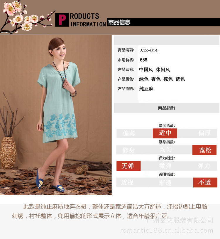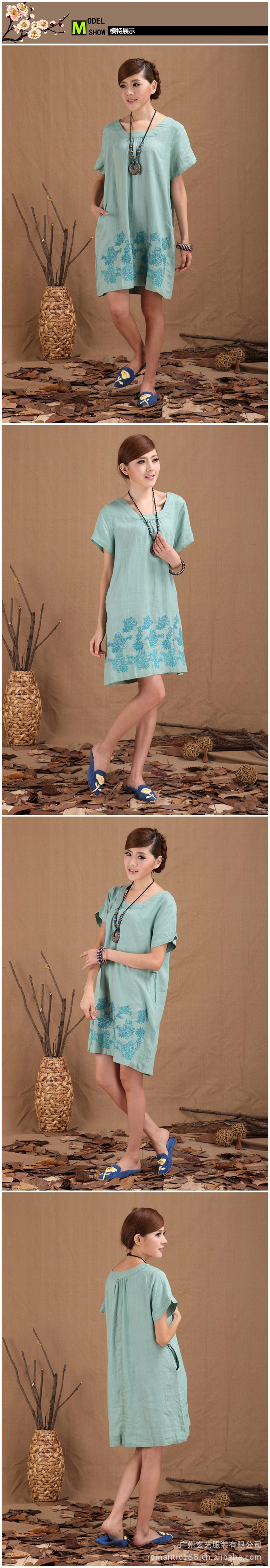 2012夏装新款连衣裙 棉麻混纺 精致的绣花图案
