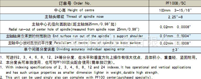 本分度头可单独使用,也可与PF100顶尖配合使用