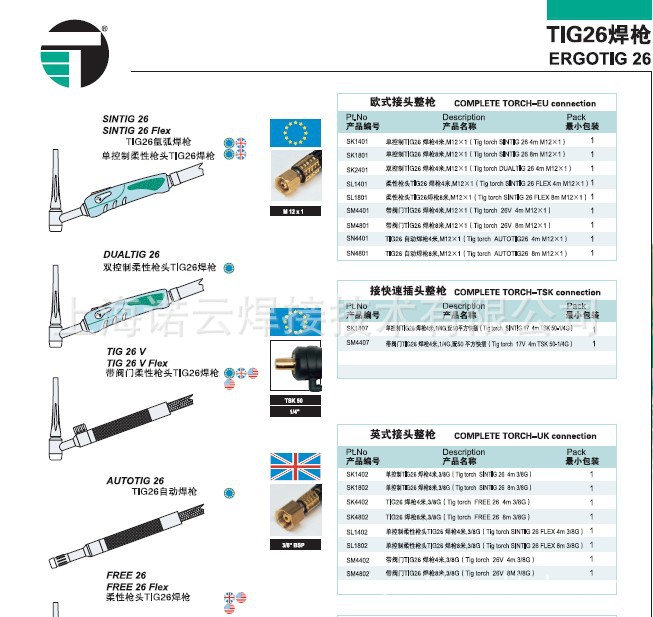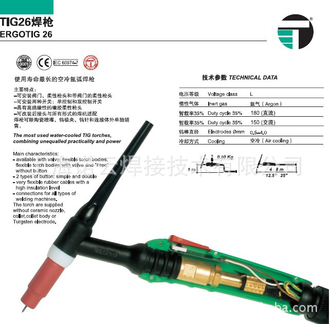 创菲美氩弧焊枪TIG26/WP-26 TIG(气冷)