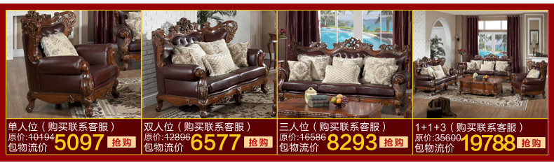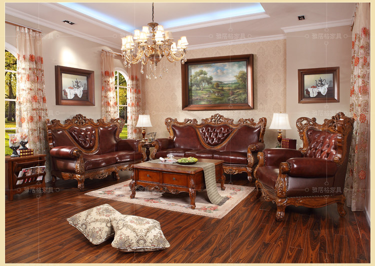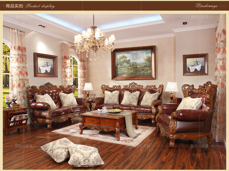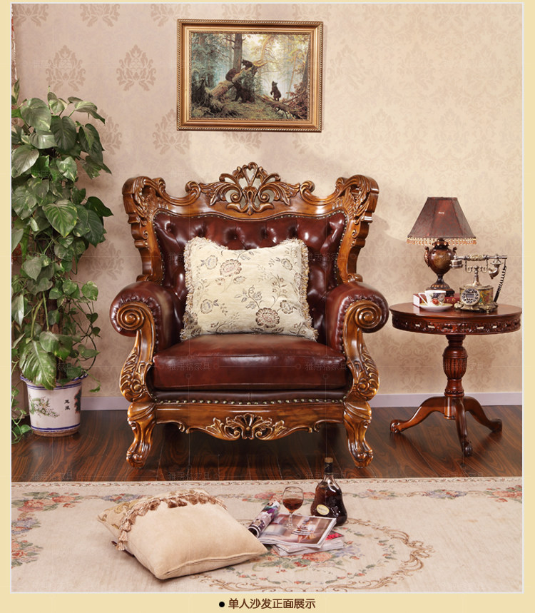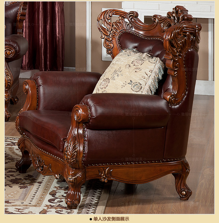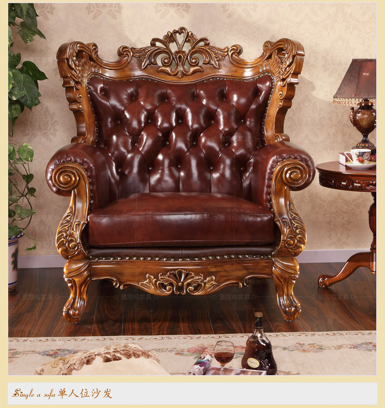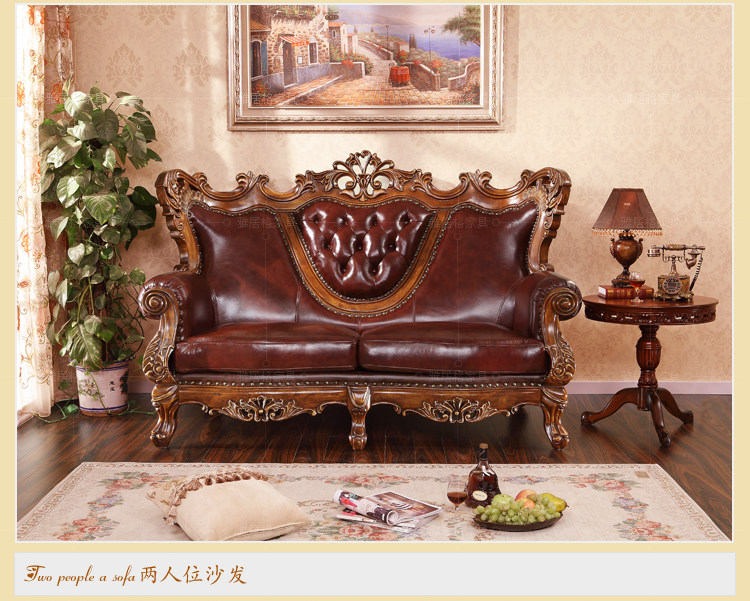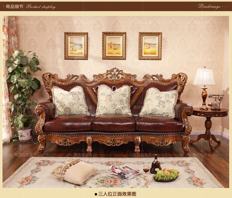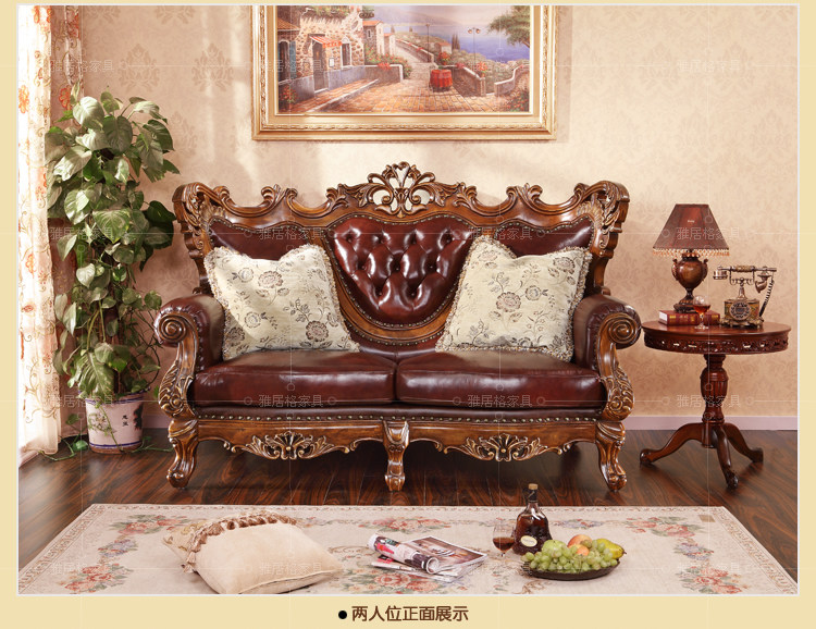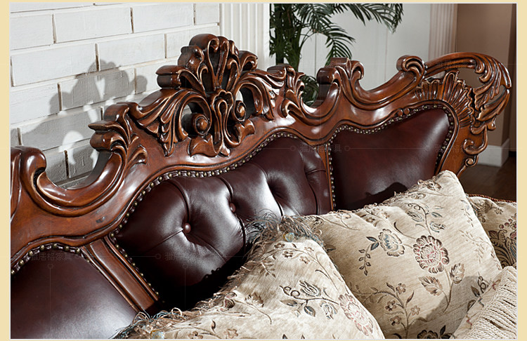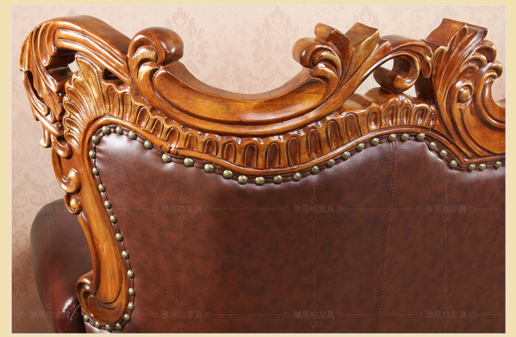 欧式沙发实木雕刻真皮艺沙发组合