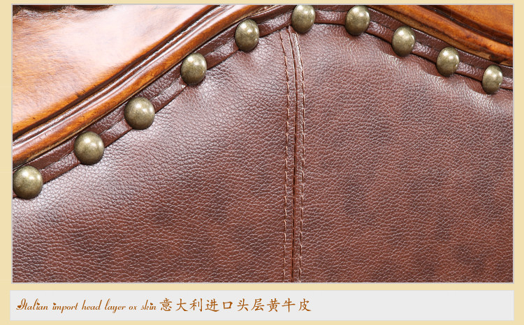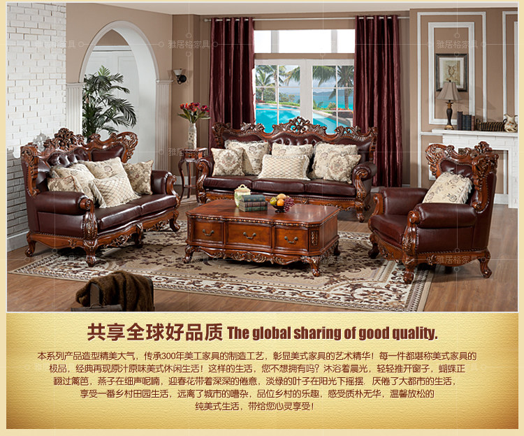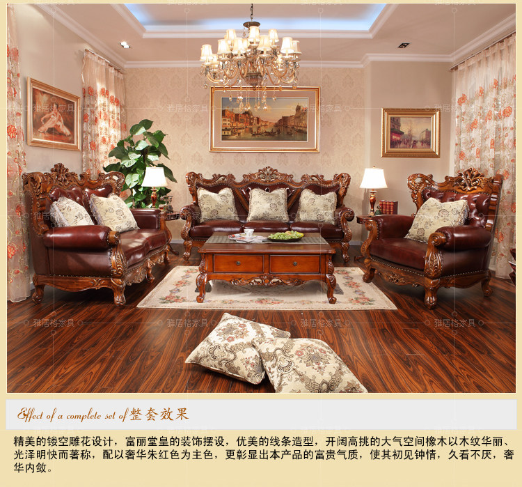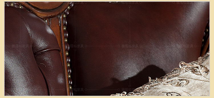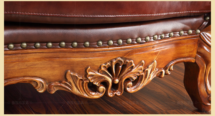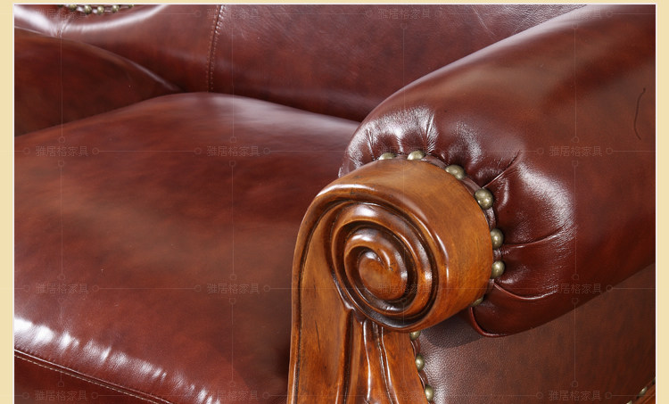 雅居格客厅欧式真皮沙发组合 美式家具头层牛皮艺实木沙发F96108