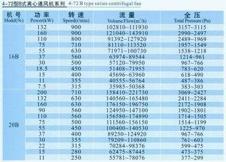 本系列风机具有高效率、噪声低、压力曲线平稳、使用范围广等特点,主要用于厂矿企业、体育馆、歌剧院、地下室、大小宾馆、酒楼、商场及大型建筑的室内通风换气,降温除尘等用途,也可以与其他各类机横设备配套作气体循环使用。输送的介质为空气和其它不自然、对人体无害、无腐蚀性气体;B4-72采用防爆电动机,可作为易燃挥发性气体的通风换气用,气体温度≤80℃,气体内不允许不粘性物质,尘土及固体杂质≤150mg/m3。