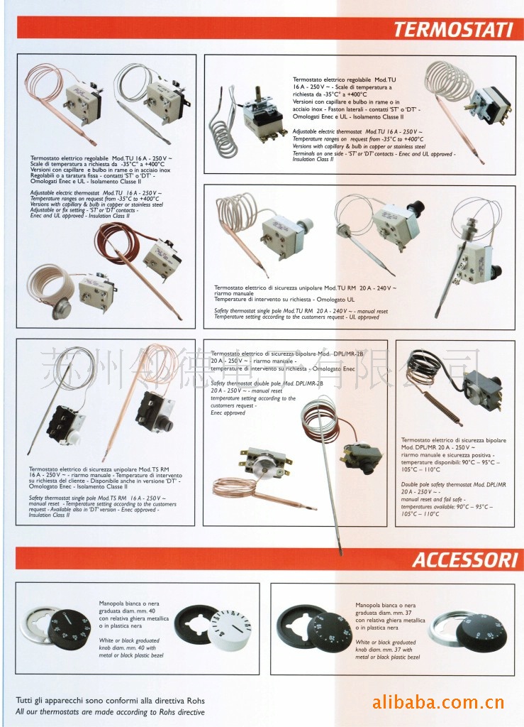 型号说明:定温型,可定制温度40~330℃,常闭触点,手动复位,单极双投SPDT,本体耐受最高100~150℃,