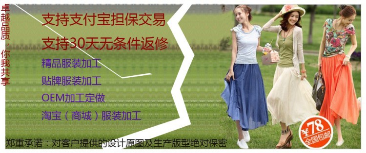◆款式丰富:女装生产研发经验,及款式可以供你参考,为节省您的研发开支,整合您需要的资源随时欢迎您看版下单◆操作灵活:合作模式多样化满足客户需求,如可以看版订货、来样贴牌、来图起