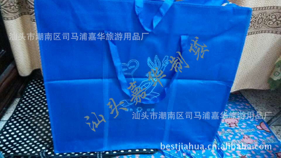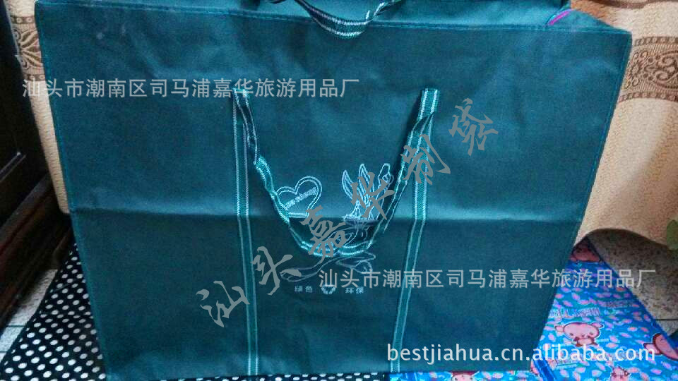 无纺布袋(又称为非织造布袋,英文:Nonwoven bags)是一种绿色产品,又叫无纺布环保袋、无纺布购物袋、无纺布便携袋。无纺布的主要成份是PP(丙纶),布料有多种颜色可供客户选择,袋子尺寸、厚度、样式可以由客户指定。能承受丝印烫印等多种印刷工艺,图案logo及文字也可按客户要求印刷。同时产品坚韧耐用、造型美观,透气性好,可重复使用、可洗涤,可丝印广告、唛头使用期长,适宜任何公司、任何行业作为广告宣传、赠品之