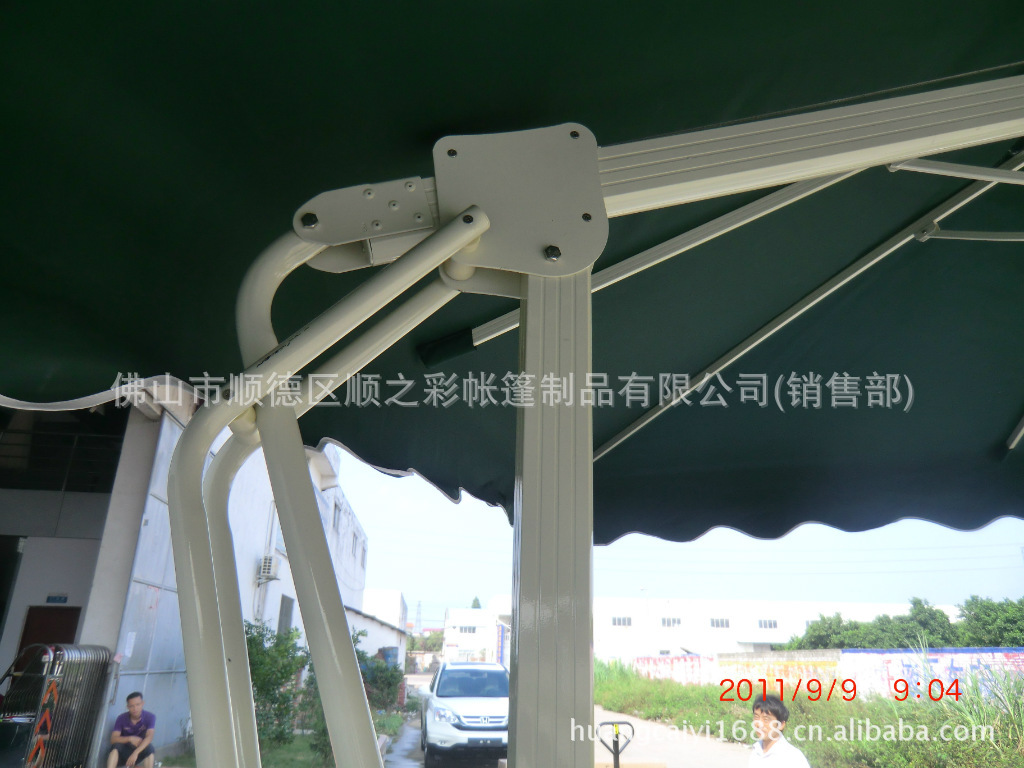 材质:伞架全部铝合金支架,表面静电白色喷涂,支架紧固件全部用不锈钢螺丝