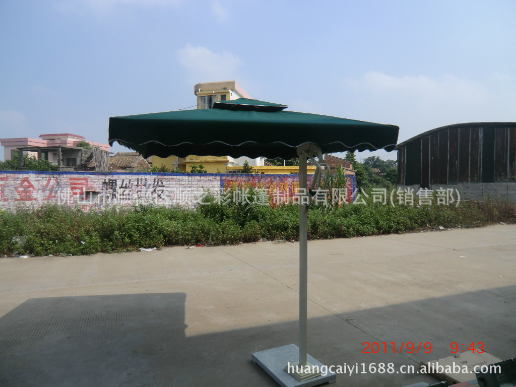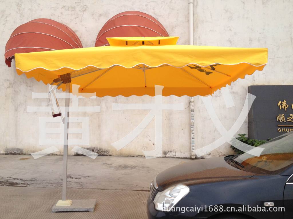 圆形:2。2M 2。5M 3M 3。6M 4。2M二、材质:铝合金1、伞骨架:高强度铝合金,静电喷涂表面2、伞布:280g雅丝丽涤沦布,防水、防晒、防紫外线,不老化、不褪色。3、伞座:天然大理石;4、伞连接件:ABS工程塑料和不锈钢螺栓。5、常用颜色:墨绿、酒红、米白、深蓝、棕、橘红、黄、绿,彩色等;三、伞结构:1、伞柱单边独立,具备100%的空间利用率。避免了传统遮阳伞在使用中要在桌子上穿孔的麻烦和尴尬。2、精密设计的传动机构和滑轮系统,一个人即可以方便地撑开和收拢。3、主体和座分离式设计,无须任何工具即可方便地将二者分开或组合,移动和搬运十分容易。4、伞布可以方便拆下,易于清洗。